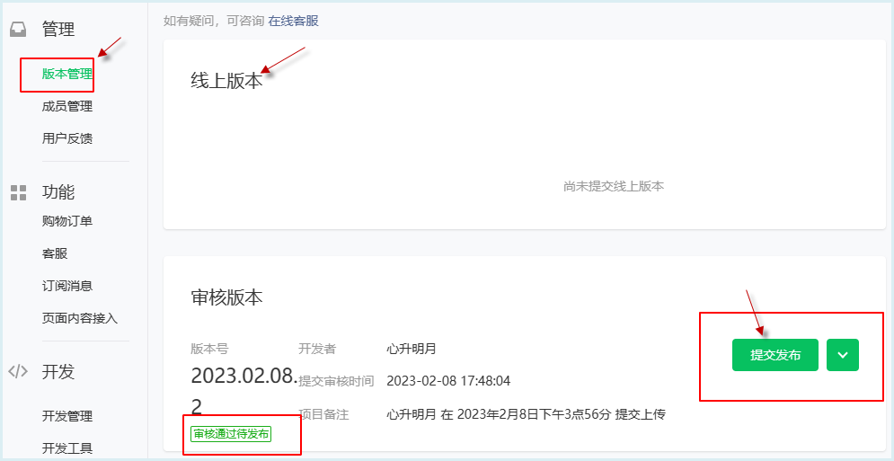 4)等待微信的測試審核,通過后,小程序才能發(fā)布