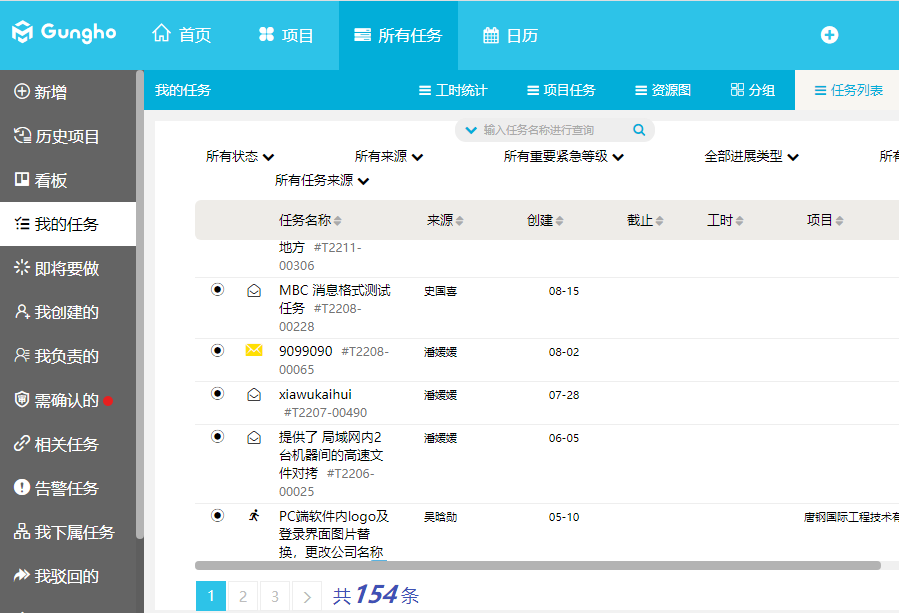 項目全生命周期管理平臺中我的任務列表 項目全生命周期管理平臺中我的任務列表