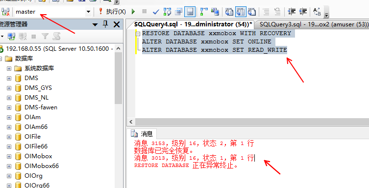 今天遇到一個非常詭異的現(xiàn)象,xxmobox數(shù)據(jù)庫還原后提示成功,但這個數(shù)據(jù)庫無法被dns服務鏈接。經(jīng)過分析發(fā)現(xiàn) xxmobox數(shù)據(jù)庫狀態(tài):關閉,正常