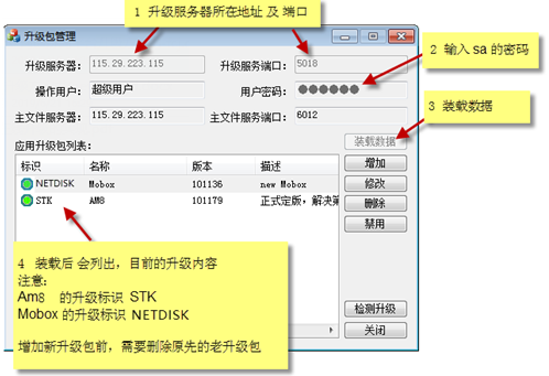 AM及Mobox客戶端可以實(shí)現(xiàn)在線自動(dòng)升級(jí)。過(guò)程是,現(xiàn)在服務(wù)器端部署最新的升級(jí)包,AM或Mobox客戶端登錄的時(shí)候,能識(shí)別服務(wù)端已經(jīng)有新的版本,進(jìn)而提醒客戶端進(jìn)行升級(jí)。以下是服務(wù)端配置最新升級(jí)包的方法