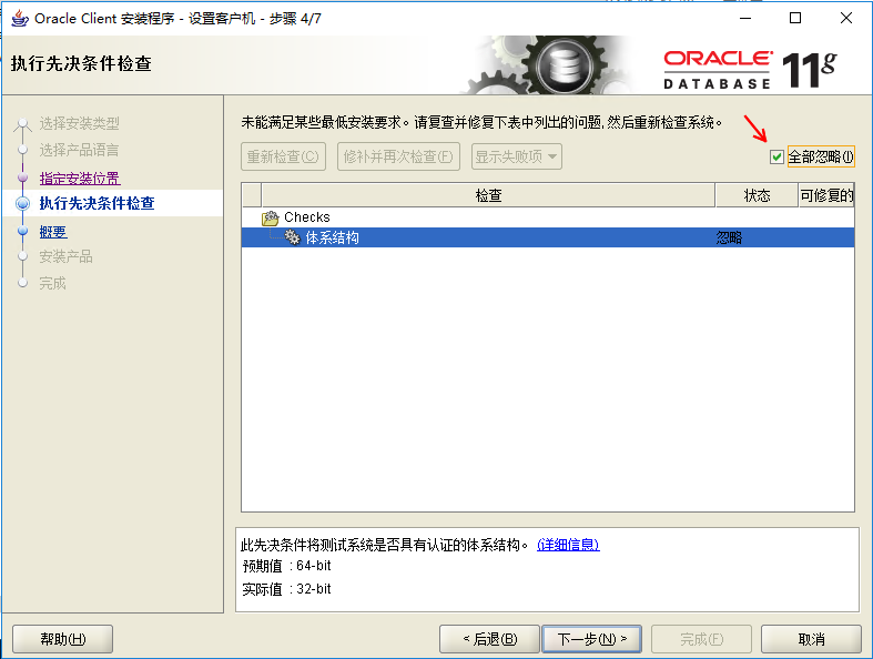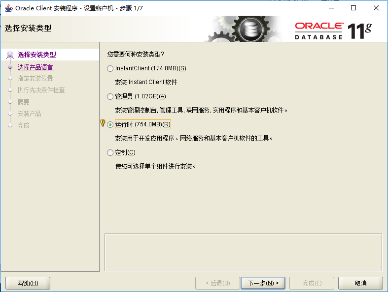 注意:客戶端目前只能用32位的(可以理解位數據庫鏈接驅動);這個客戶端安裝后 Mobox及Gungho的相關服務才能鏈接Oracle數據庫。