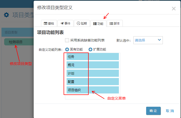 通過項目分類定義 (8012功能點(diǎn)),修改某類項目的菜單
