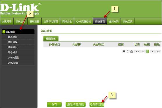 注意:有些路由這個設置名稱是?“虛擬服務器”?,其道理是一樣的,都是做端口映射