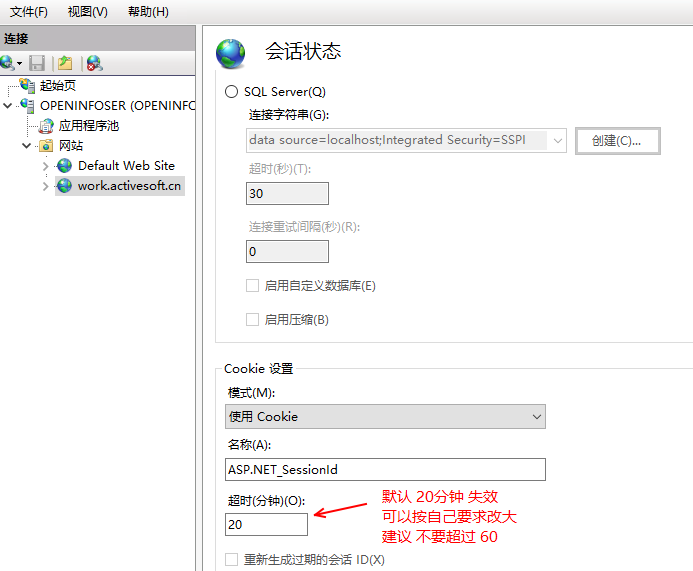 Mobox實(shí)施工程師希望,“mobox2一段時(shí)間不動(dòng),就需要刷新頁面,這個(gè)時(shí)間可以延長嗎,比如說頁面半個(gè)小時(shí)候沒人動(dòng),才需要刷新” 。這個(gè)需要設(shè)置設(shè)置下IIS的session 過期時(shí)間來實(shí)現(xiàn)